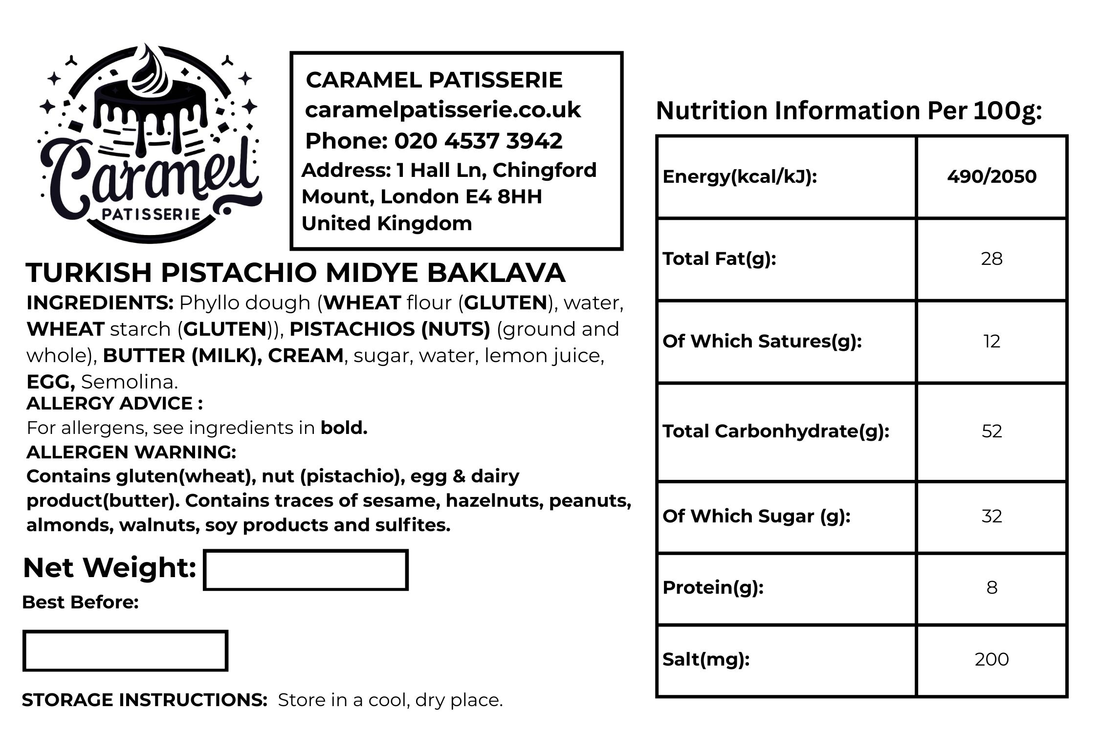 Discover the exquisite craftsmanship of Turkish desserts with Caramel Patisserie’s Turkish Pistachio Midye Baklava—a treat that combines tradition, elegance, and exceptional flavor.